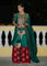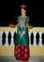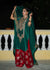 A regal green and red ensemble including a beautiful raw silk shirt embroidered and embellished with pita work detailing on neckline. The neckline is also adorned with gold sequins and naqshi with gold and pink buggle beads and colorful block printed puff sleeves. It is paired with heavily embroidered and embellished red shalwar. It is paired with green organza dupatta with block printed four sided border.