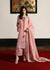 Blush pink raw silk shirt featuring intricate floral embroidery in soft gradient tones, delicately accented with silver sequins and hand embellishments. Fitted sleeves mirror the shirt’s floral detailing for a seamless finish. Paired with matching raw silk culottes adorned with complementing embellishments, and a pure organza dupatta embroidered along all four sides in fine floral motifs.