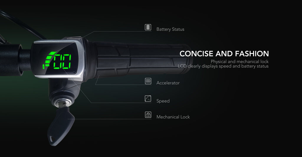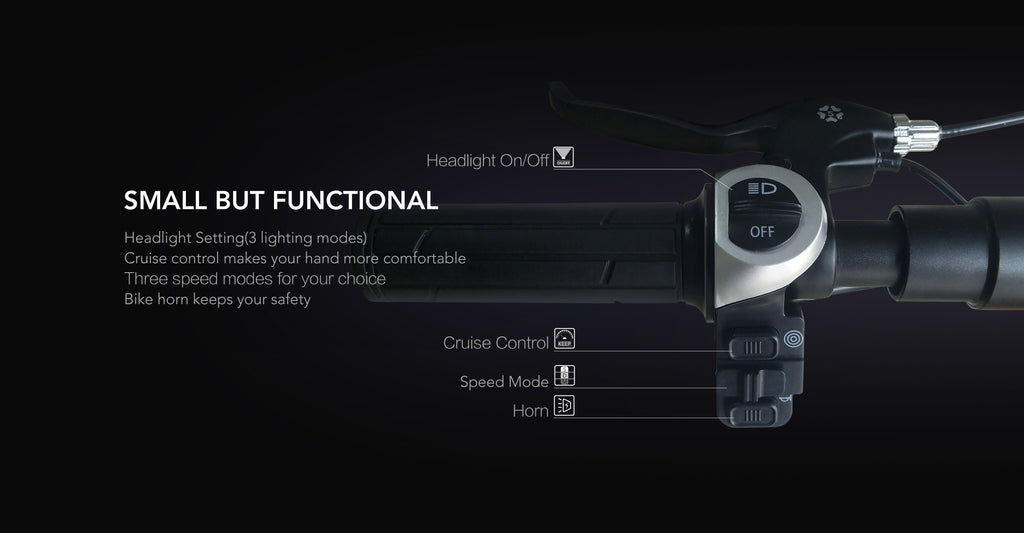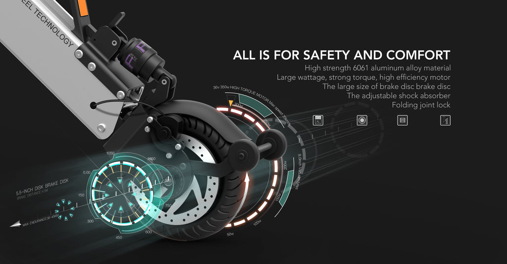 Max speed —— 350 W high power hub motor,30 km/h (when rider weighs 65 KG)