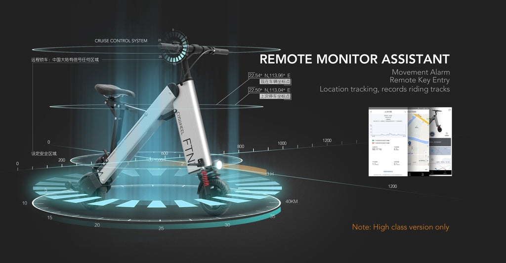 Features —— Front and rear damper/cruise control and (GPS Advanced) Remote monitor, remote